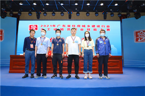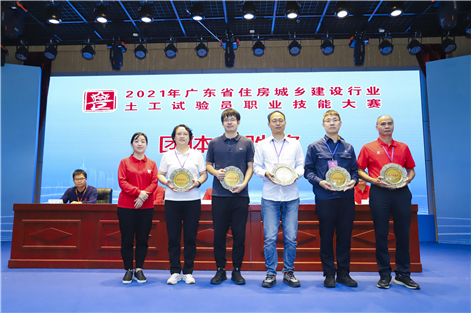 在激烈的角逐中,工勘團(tuán)隊不畏強(qiáng)手,奮勇拼搏,以并列第9名的成績斬獲團(tuán)體優(yōu)勝獎,在深圳市住建局選派的五家單位中排名第二;辛文正獲個人第8名、“土的界限含水率試驗(yàn)”單項第1名;鄒東雨獲個人第38名。