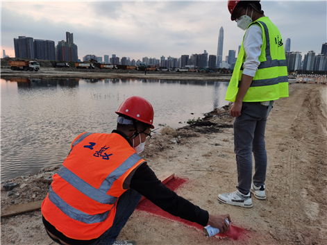 2月底,在香港抗疫形勢(shì)最為嚴(yán)峻的時(shí)刻,測(cè)量團(tuán)隊(duì)第一批趕赴現(xiàn)場(chǎng)。當(dāng)時(shí)的施工場(chǎng)地還是一片雜草叢生的荒灘,野豬成群,且時(shí)有蟒蛇、鱷魚(yú)出沒(méi),野外作業(yè)環(huán)境異常惡劣、兇險(xiǎn)。且當(dāng)時(shí)場(chǎng)地尚未搭設(shè)臨建,測(cè)量人員的住宿被統(tǒng)一安排在市區(qū)酒店,即使冒著被疫情傳染的高風(fēng)險(xiǎn),他們依然選擇逆行而上。