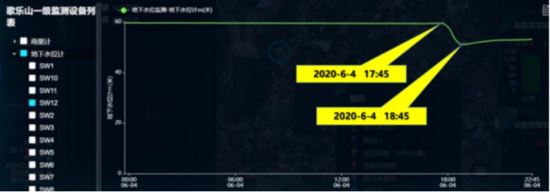 1、從6月4日17:45-18:45,地下水位SW12(龍泉村村委會(huì)附近)相對(duì)監(jiān)測(cè)孔口距離水位突升8m;