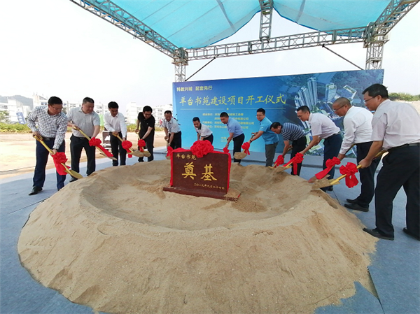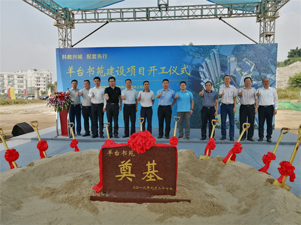 到場的領(lǐng)導(dǎo)、嘉賓一同為“羊臺書苑”的奠基石揭幕并培上第一鍬土,預(yù)祝項目開工大吉、順順利利。