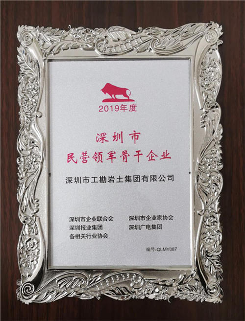 工勘集團(tuán)獲授牌“2019年度深圳市民營(yíng)領(lǐng)軍骨干企業(yè)”