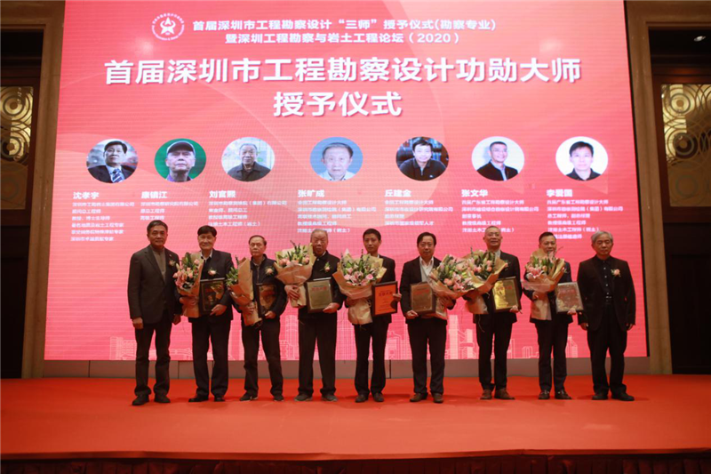 工勘集團(tuán)總工程師陳鴻(左三)獲評(píng)為“首屆深圳市工程勘察設(shè)計(jì)大師”